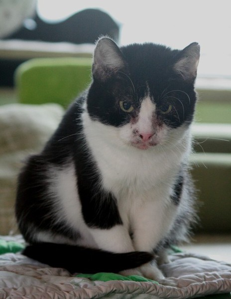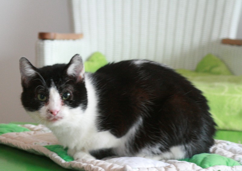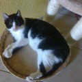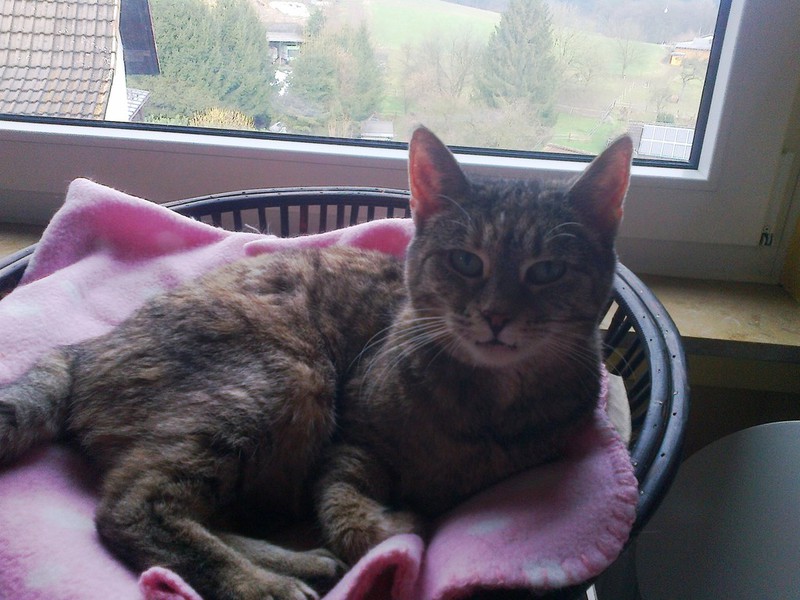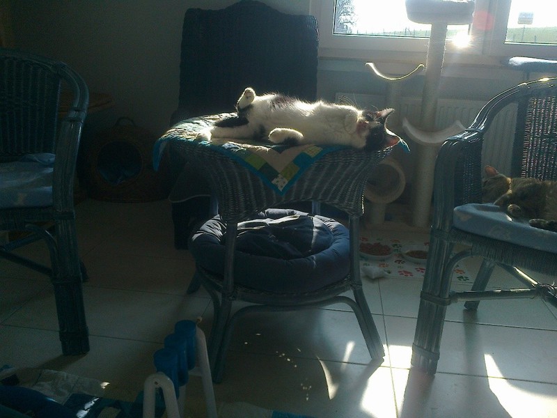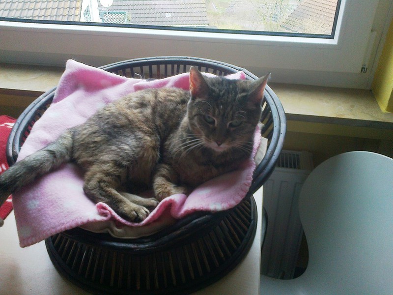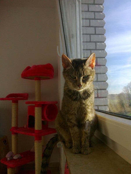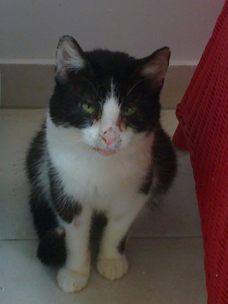 YinYang ist mit ihren gschätzen 13/14 Jahren die Älteste im Bunde und die Mutter von unzähligen Katzen. Sie war nur noch Haut und Knochen bei Aufnahme. Nachdem sie nach langen Jahren des Gebärens endlich kastriert wurde, die vereiterten Zähne entfernt waren, Parasiten wie Flöhe, Ohrmilben und Bandwurm keine Chance mehr hatten, da begann sie zuzulegen. Sie fraß und fraß und fraß.... Blutbild war absolut in Ordnung, keine Nierenprobleme oder sonstiges. Allerdings verträgt YinYang nicht jedes Futter, von Billigsorten mit vielen Zusatzstoffen bekommt sie Durchfall. Aber es gibt genug Sorten, die man im Fachhandel (Fressnapf, Futterhaus, zooplus etc.) problemlos bekommt. Se benötigt kein Spezialfutter in dem Sinne. Unsere Älteste hat leichte Rollider, womit sie aber gut leben kann und das ja auch schon viele Jahre tut, wir haben daher von einer OP abgesehen, das wäre alles zuviel für sie gewesen. Die überlaufende Tränenflüssigkeit wird an der Luft braun und so sieht sie immer ein wenig schmutzig im Gesichtchen aus, mal mehr, mal weniger. Das ist aber nur ein optisches Problem. Leider benutzt YinYang nicht immer das Katzenklo, sondern macht davor. Sie pinkelt nicht umher, immer nur vors Klo. Vielleicht ist sie schon etwas dement oder protestiert, weil sie jahrelang kein Klo hatte und in die freie Natur gemacht hat. Sie sollte daher wieder die Möglichkeit haben, nach draußen zu gehen, dann wird sich dss von allein legen. YinYang ist nicht sehr verschmust, das kennt sie nicht, bei so vielen Katzen, mit denen sie immer alles teilen musste und immer besorgt um den Nachwuchs. Wenn es Leckerchen gibt, ist sie aber die erste, die vor einem steht und allerliebst miaut :-))) Dann könnte man das alte Mädchen einfach nur knuddeln und wir sind froh, dass sie jetzt noch eine gute Zeit vor sich hat, die sie hoffentlich für die entbehrungsreichen Jahre ein klein wenig entschädigt. YinYang kann auch einzeln vermittelt werden, denn sie legt nicht viel Wert auf Katzengesellschaft, sondern genießt ihr neues Leben gern in Ruhe und aalt sich in der Sonne. Allerdings stören sie andere Katzen auch nicht, sie kann aber problemlos zu anderen Katzen hinzu. Auf den ersten Fotos ist sie noch nicht lange bei uns, auf den letzteren sieht sie schon viel besser aus!