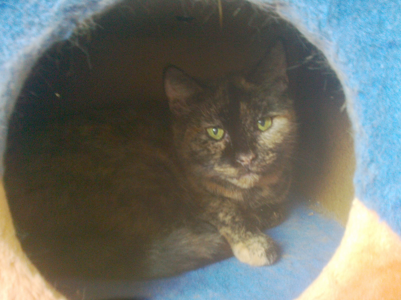 Lulu ist eine bildhübsche Schildpattkätzin in warmer dunkler Färbung. Sie ist auch schon über 10 Jahre alt. Sie ist in neuer Umgebung anfangs recht schüchtern, taut jedoch sehr schnell auf und dann kann sie vom Schmusen nicht genug bekommen. Vom Charakter her ist sie eher ruhig und gediegen, kann aber auch ganz schön auftrumpfen, wenn eine andere Katze sie ärgern möchte ;-) Sowieso ist Lulu eher eine Einzelkatze, sie relationiert sich nicht besonders mit den anderen Pflegekatzen, verträgt sich aber gut, solange man sie nicht nervt, was so mancher Jungspund manchmal nicht lassen kann ;-) Also könnte Lulu entweder als Einzelkatze mit Freigang in guter ruhiger Gegend vermittelt werden oder aber zu einem lieben ruhigen älteren Kater hinzu. Lulu ist dankbar für jedes gute Wort und weiß eine gute Mahlzeit sehr zu schätzen. Sie hat sich gut erholt und ihr seidenweiches Fell verlockt einem zum Streicheln, was sie jederzeit huldvoll annimmt :-) Lulu ist wie alle Rösrather eine ganz wunderbare Katze und sucht Menschen, die sie zu schätzen wissen und sie liebhaben.